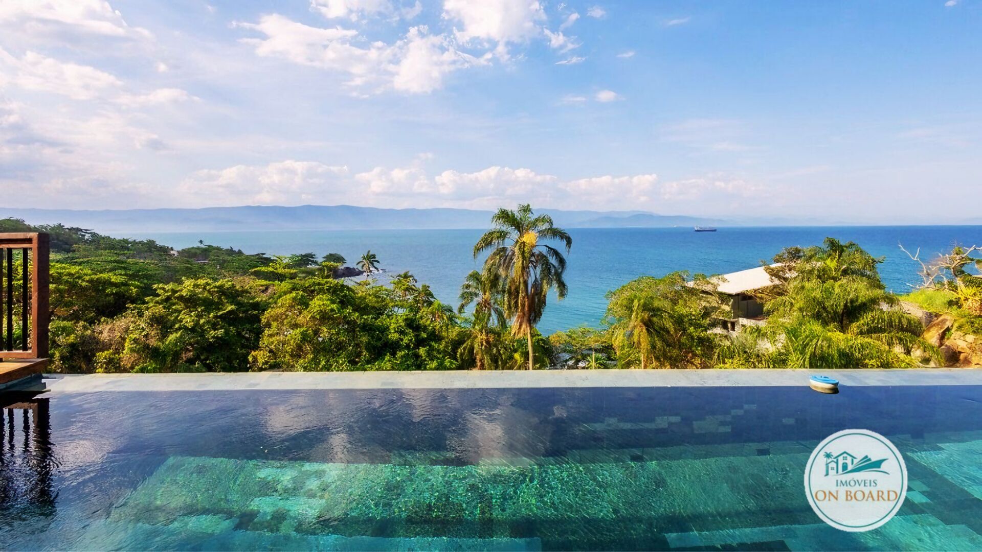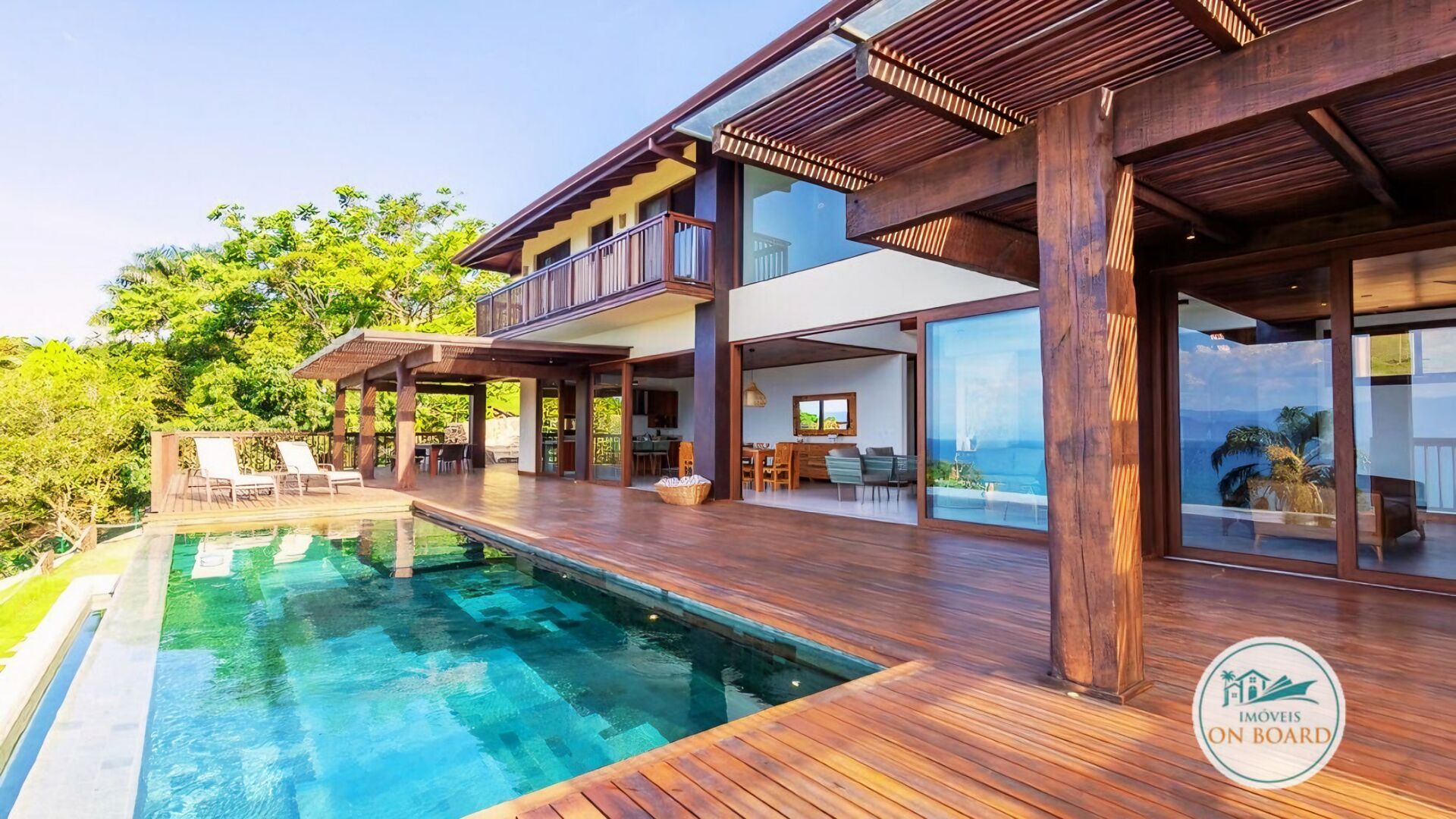 Além disso, essa linda casa a venda em ilhabela conta com uma piscina com acabamento em hijau, que complementa o cenário paradisíaco da região.